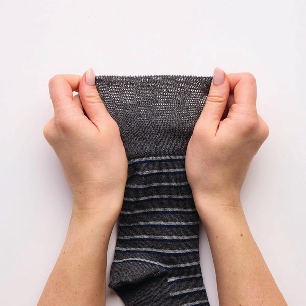 Au cœur de chaque chaussette Gentle Grip se trouve notre célèbre HoneyComb Top™, une technologie non contraignante qui s'étire en douceur et épouse la forme naturelle de vos jambes, soulageant ainsi la pression et la compression, évitant ainsi les pincements et les marques de compression désagréables typiques des chaussettes classiques. D'ailleurs, la construction innovante HoneyComb Top™ de Gentle Grip est scientifiquement prouvée comme étant deux fois plus souple qu'une chaussette en coton classique !