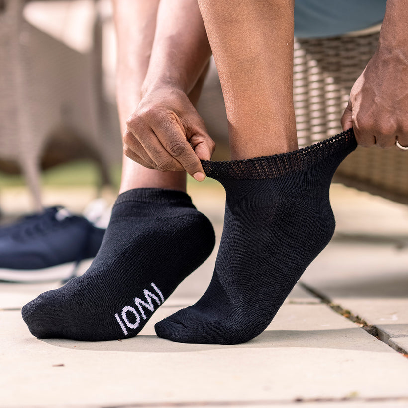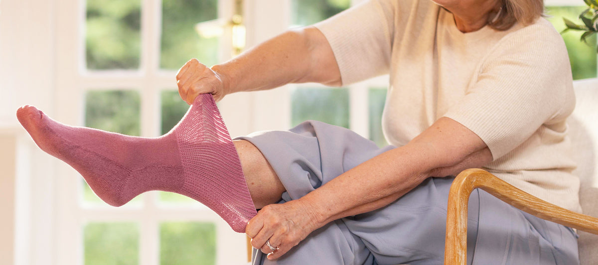 IOMI FootNurse offers a range of specialised health and wellbeing socks designed to aid feet, ankles and legs including a Diabetic Gentle Grip sock option with extra smooth toe seams. In addition the range offers cushion foot Diabetic socks, Extra Wide Oedema socks for Lymphoedema, Fluid Retention and other conditions associated with swollen feet and ankles, Flight socks, Energising Compression socks, Toe socks, Plantar Fasciitis socks and more.