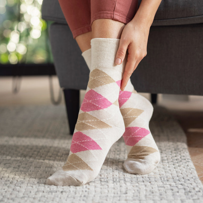 Gentle Grip socks are designed to stay in place without compromising on comfort. Our unique Non-Binding HoneyComb Top gently holds the legs without restriction avoiding irritating and unsightly compression marks. Available in a soft touch cotton, a smooth silky bamboo and a thermal wool blend there are plenty of options to choose from in a multitude of colourways, patterns and designs.